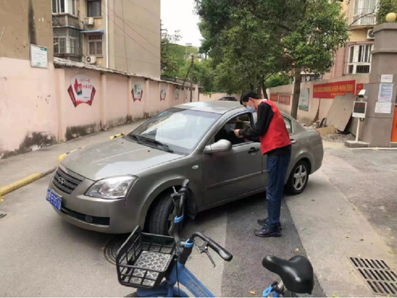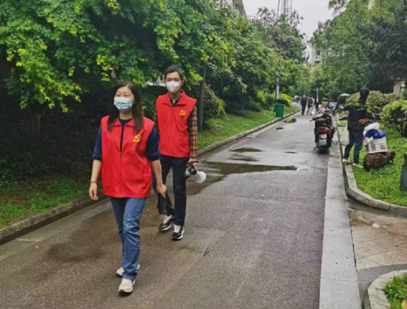 黨員志愿者在社區(qū)內巡邏,向社區(qū)居民宣傳疫情防控知識,及時發(fā)現和堵塞防控漏洞。