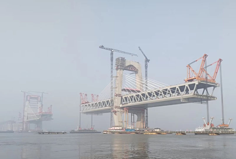 截止目前,主橋鋼梁已完成43節(jié)(共88個(gè)節(jié)間),斜拉索已安裝128根(共304根)。