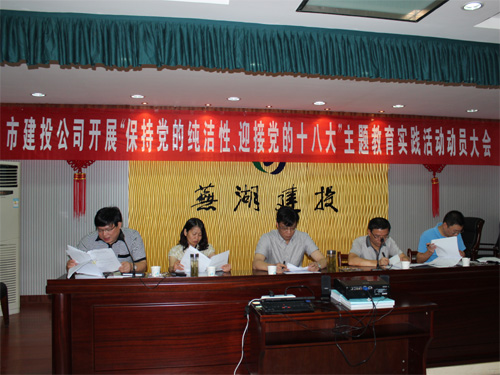 根據(jù)市委統(tǒng)一部署,公司于7月5日召開“保持黨的純潔性、迎接黨的十八大”主題教育實(shí)踐活動動員大會,公司全體黨員參加了會議。會議由公司副總經(jīng)理朱毅主持,公司紀(jì)檢組長汪學(xué)德向全體黨員傳達(dá)了市委相關(guān)文件精神,公司副總經(jīng)理方曉向全體黨員通報(bào)了公司主題教育實(shí)踐活動實(shí)施方案,公司副總經(jīng)理湯高繼帶領(lǐng)全體黨員學(xué)習(xí)了胡錦濤總書記在慶祝建黨九十周年上的講話、在十七屆中央紀(jì)委第七次全會上的講話及張寶順在省第九次黨代會上的工作報(bào)告等資料。全體黨員觀看了專題電教片《永葆黨的純潔性》等。