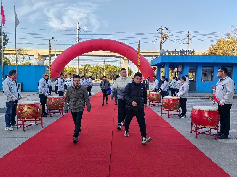 滿載收獲喜悅,滿懷奮進豪情。蕪湖莫森泰克汽車科技股份有限公司總經(jīng)理周玉成攜帶全司中、高層領導干部整齊列隊,在公司大門口迎接前來上班的員工們。伴著八面大鼓鏗鏘有力的鼓點節(jié)奏和喜慶熱烈的歌曲聲,在清晨溫暖的陽光中,來自各方的員工們紛紛踏著紅地毯穿過紅色拱門,進入廠區(qū)開啟新年第一天的工作。